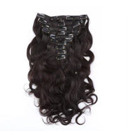 Elevate your style with our BodyWave Clip-Ins Extensions! Made from 100% human hair, these 10A Grade extensions feature a natural 1B color and a variety of textures to choose from. With a 150% density, they add volume and length to your hair without any chemical processes. Inspired by one donor's hair, the cuticles are intact and aligned for a silky smooth finish. Available in lengths of 14-30 inches, and weighing about 130g, these extensions are the perfect addition for any style-conscious individual.